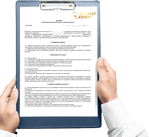 我们公司负责安全运送你方货物。货物运输的主要单据是一份盖有Railway expert印章的提单,上面写明发货人、收货人、货物性质、货物数据。提单由寄件人签字确认。如果您需要另一个法律确认使用铁路快速货运服务,那么您将更方便地与我们签订一个标准合同,明确我们对货物安全的责任。